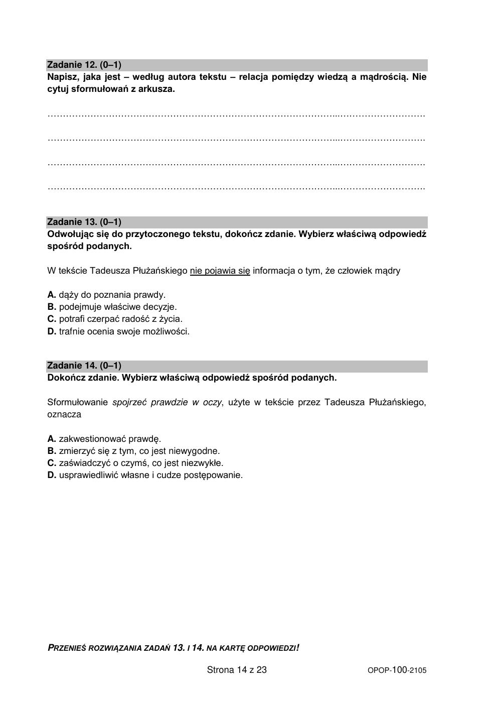język polski - egzamin ósmoklasisty 2021 - arkusz-14