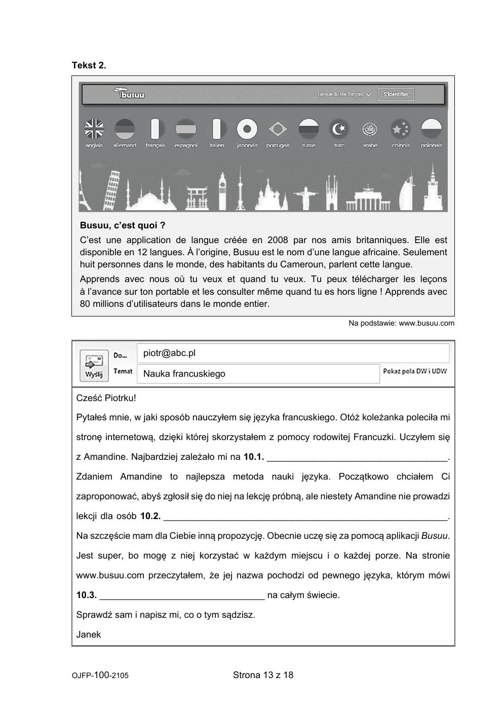 język francuski - egzamin ósmoklasisty 2021 - arkusz-13