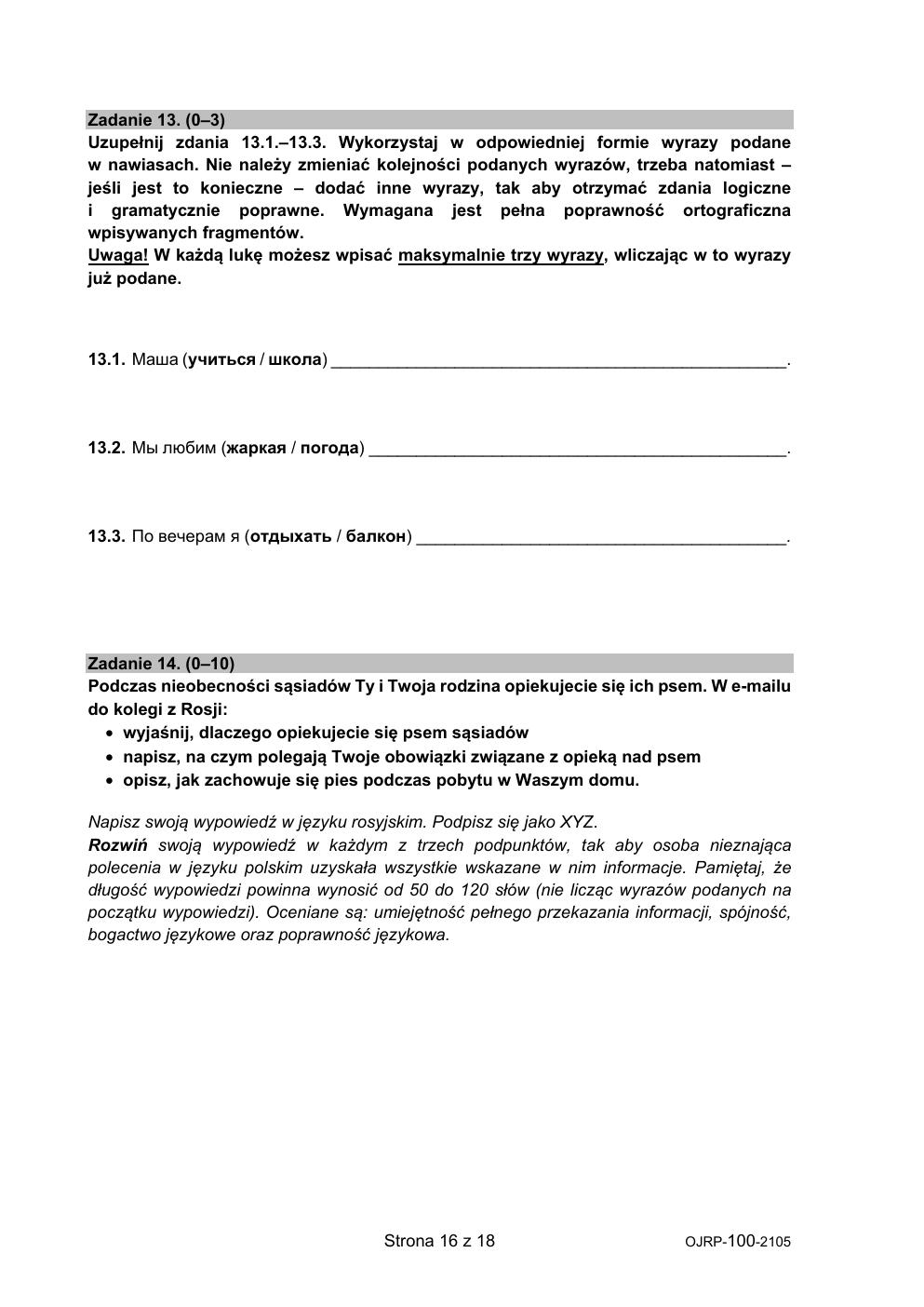 język rosyjski - egzamin ósmoklasisty 2021 - arkusz-16
