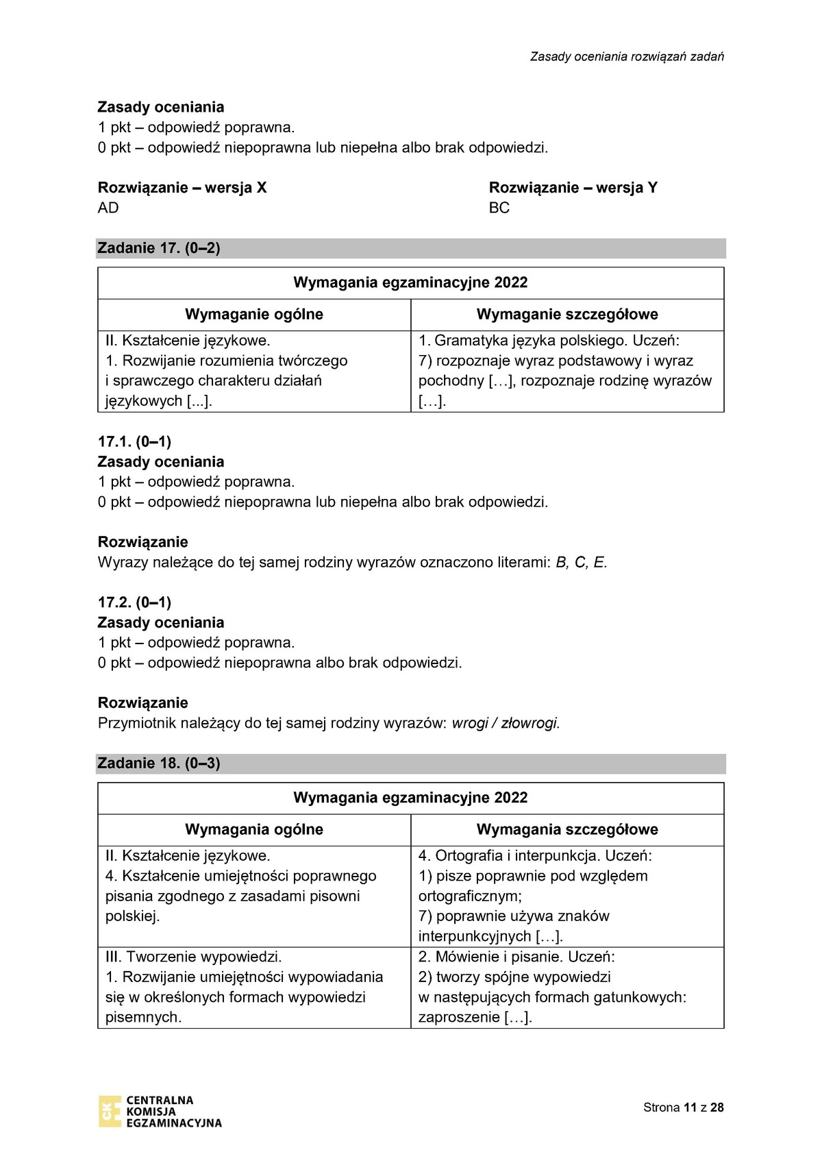 zasady oceniania - odpowiedzi - język polski - egzamin ósmoklasisty 2022 - 0011