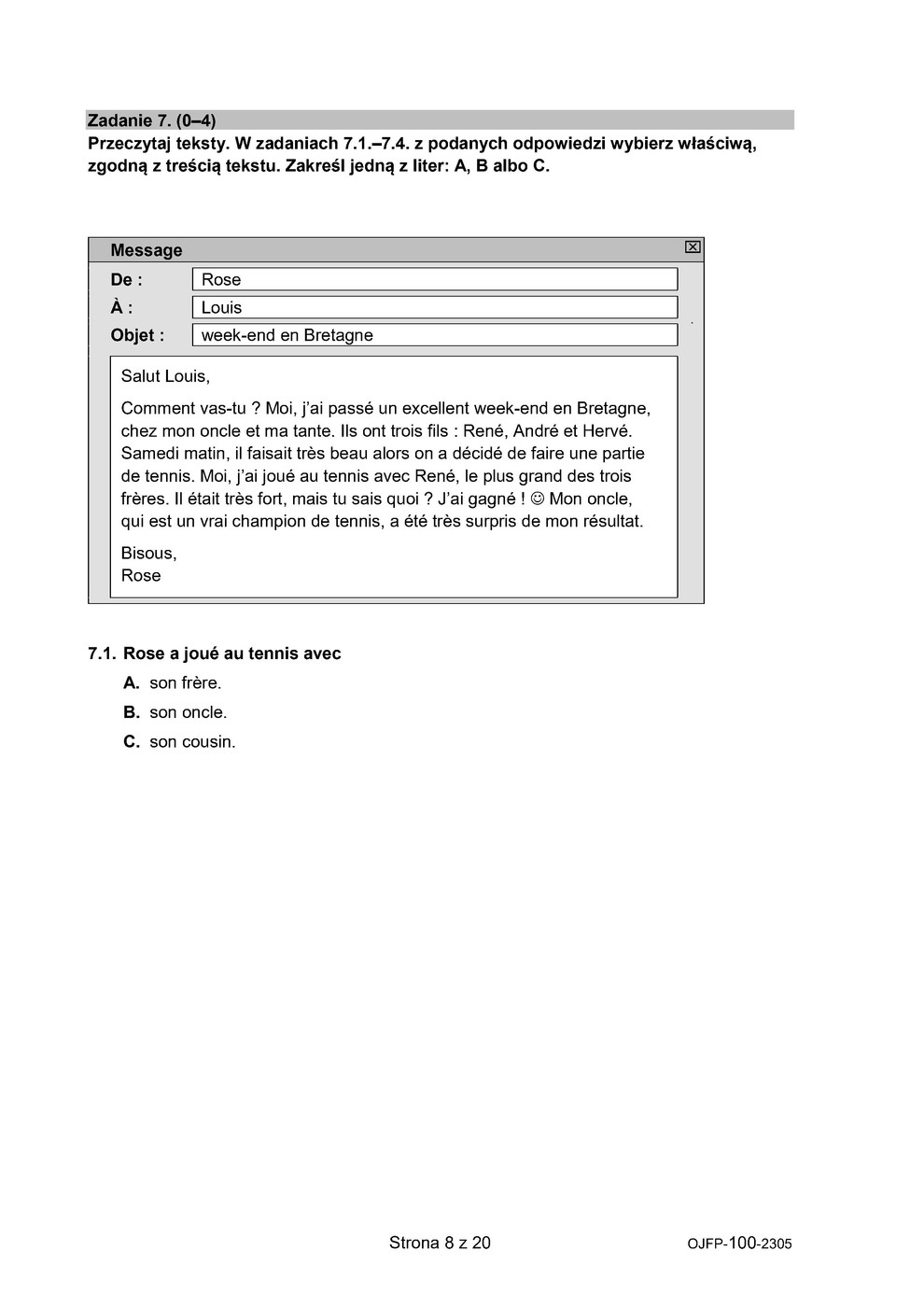 arkusz - język francuski - egzamin ósmoklasisty 2023 - 0008