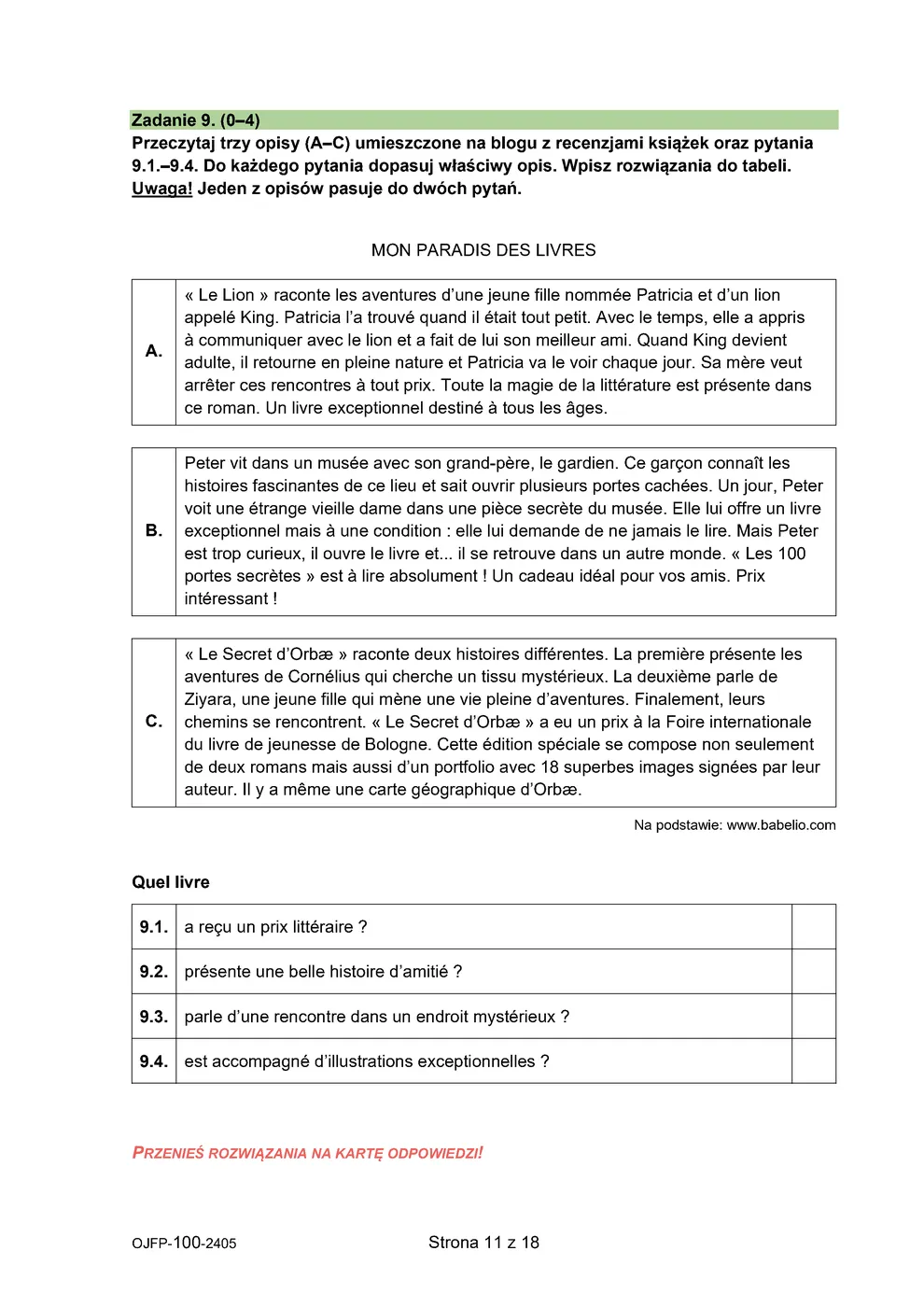 arkusz - francuski - egzamin ósmoklasisty 2024 - 0011